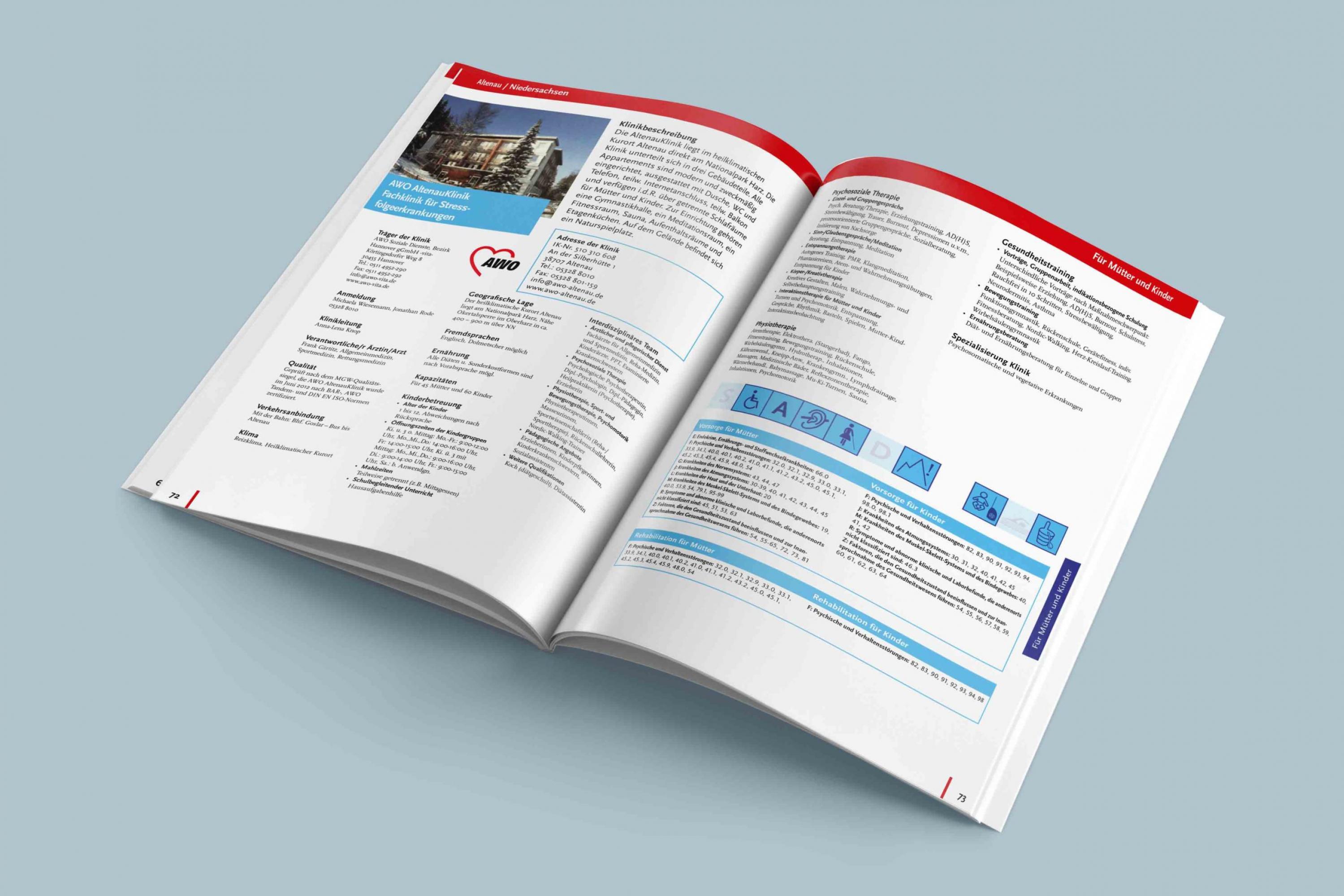Das Jahrbuch vom Müttergenesungswerk ist mindestens genauso umfangreich wie die WEBSEITE. Alle Kliniken möchten darin abgebildet werden und es dient als guter Vergleich der Kliniken für den Offline-Gebrauch.