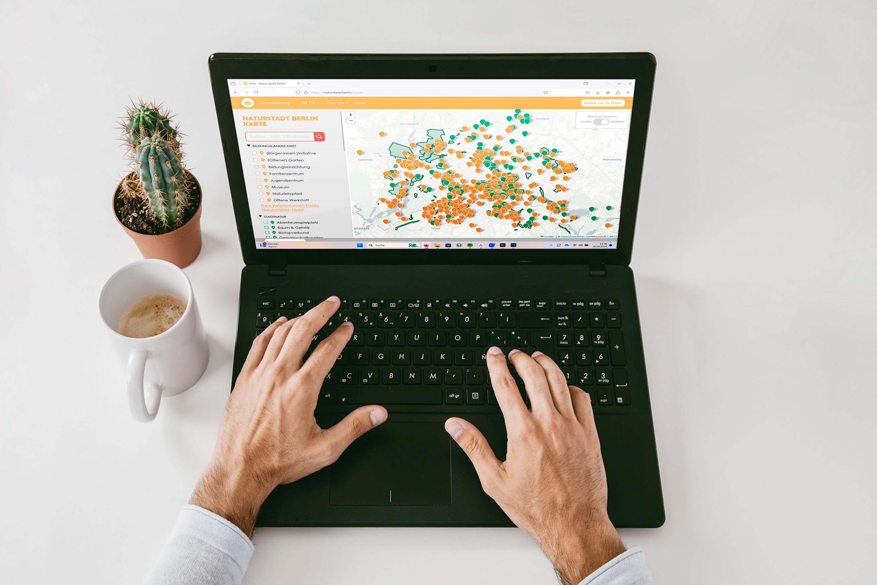 Bei der Gestaltung der Karte für die Immobilie in der Osloer Straße 114 wurde die Farben aus dem Logo aufgegriffen und bei der Gestaltung der Karte für die Grünflächen, die Darstellung von Wasser, Tramhaltestelle, U-Bahn Stationen etc. verwendet. So stellt auch die Karte, welche auch in der dazugehörigen Broschüre abgebildet wurde, eine Verbindung zum Branding her.