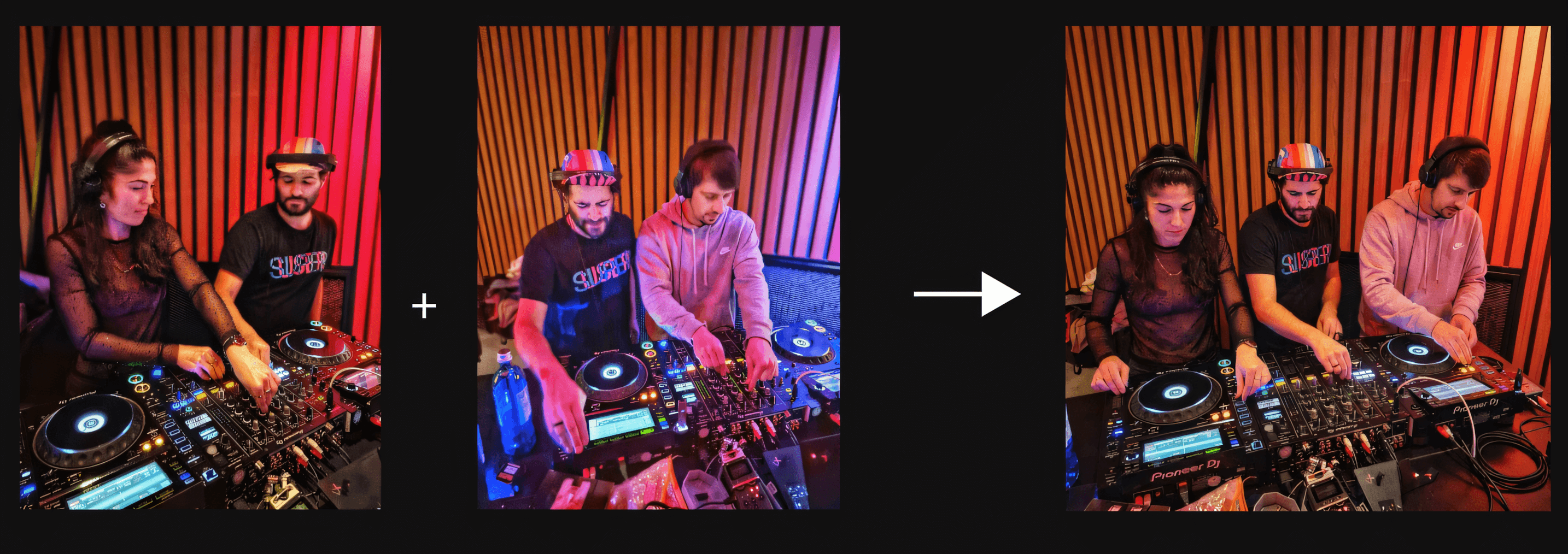 In meiner Freizeit lege ich ab und an Musik auf – oft zusammen mit Freund:innen. Und wie das so ist: Es entstehen einige Fotos. An diesem Abend hatten wir zu dritt gespielt, aber es gab kein einziges Bild, auf dem wir alle drei gemeinsam zu sehen waren.