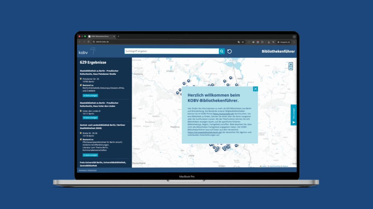 Interaktive Karte für KOBV (Bibliotheksverbund Berlin & Brandenburg)