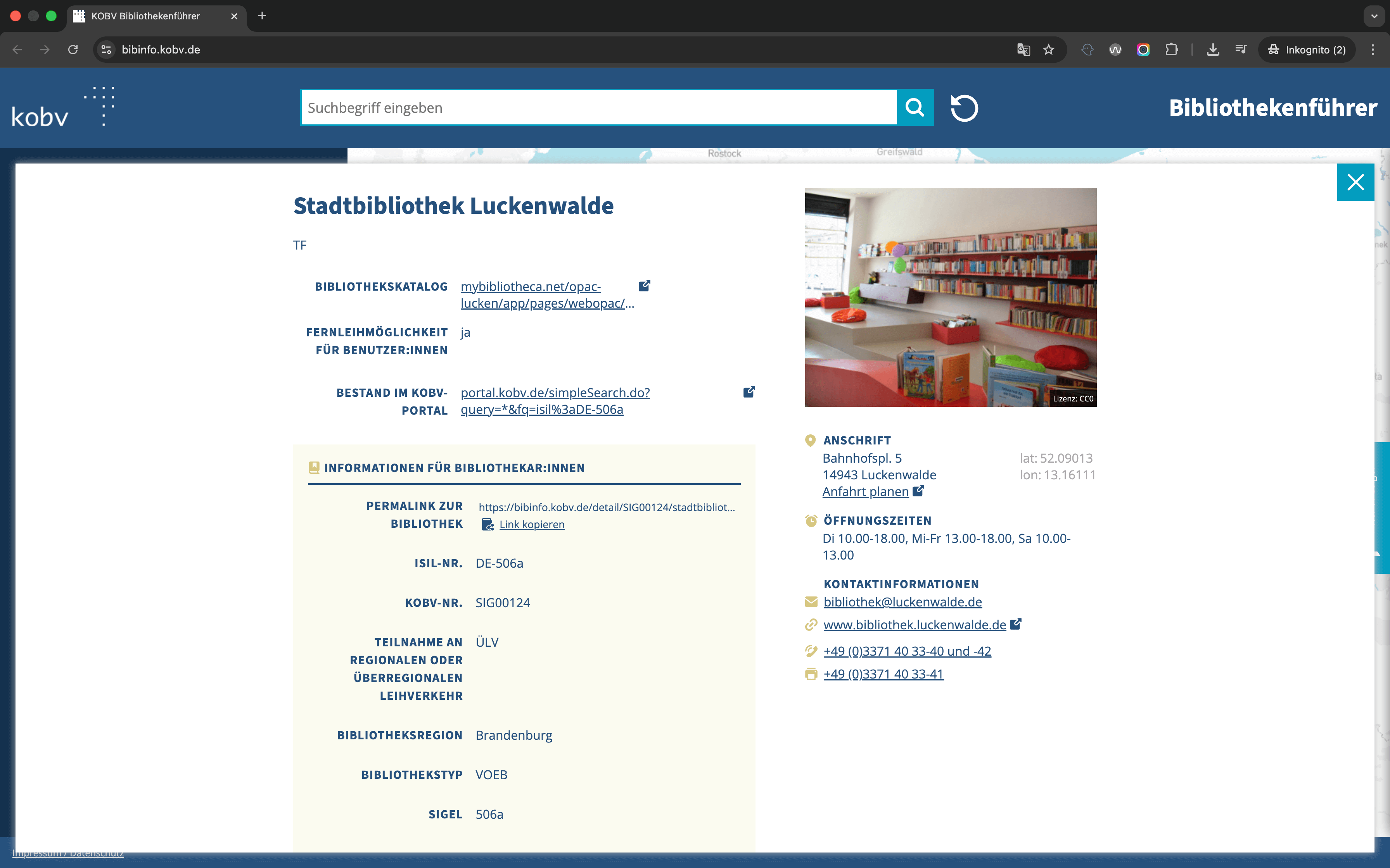 Das Team des KOBV hat uns dazu die zugehörigen Geodaten und weitere Daten zu den jeweiligen Bibliotheken bereitgestellt.