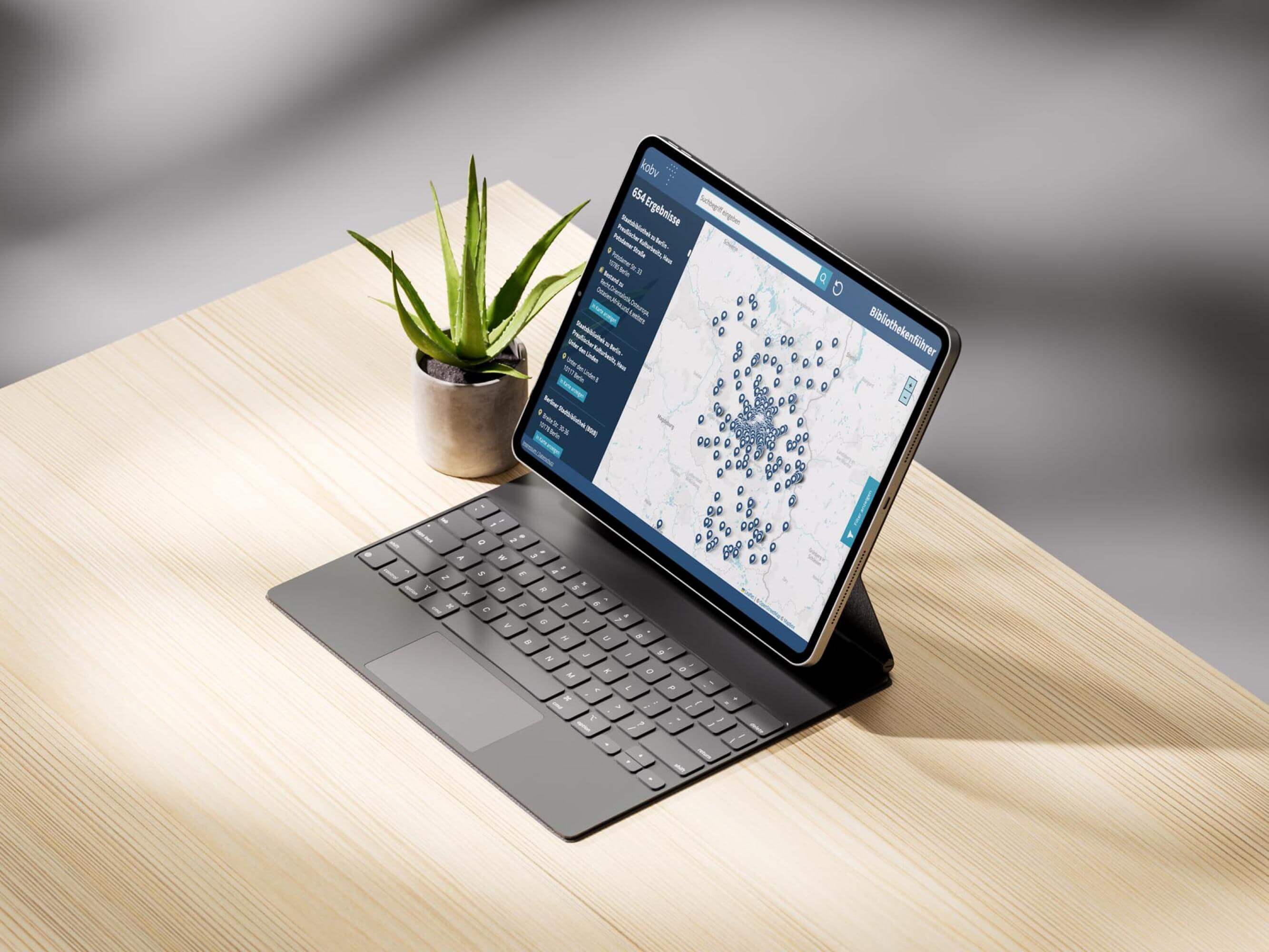 Wir hatten wieder einmal die spannende Aufgabe, eine interaktive Stadtkarte für den Kooperativen Bibliotheksverbandes Berlin-Brandenburg (KOBV) gestalten und programmatisch umsetzen zu dürfen. Auf der Karte sind mehr als 650 Bibliotheken aus der Region Berlin/Brandenburg zu finden.