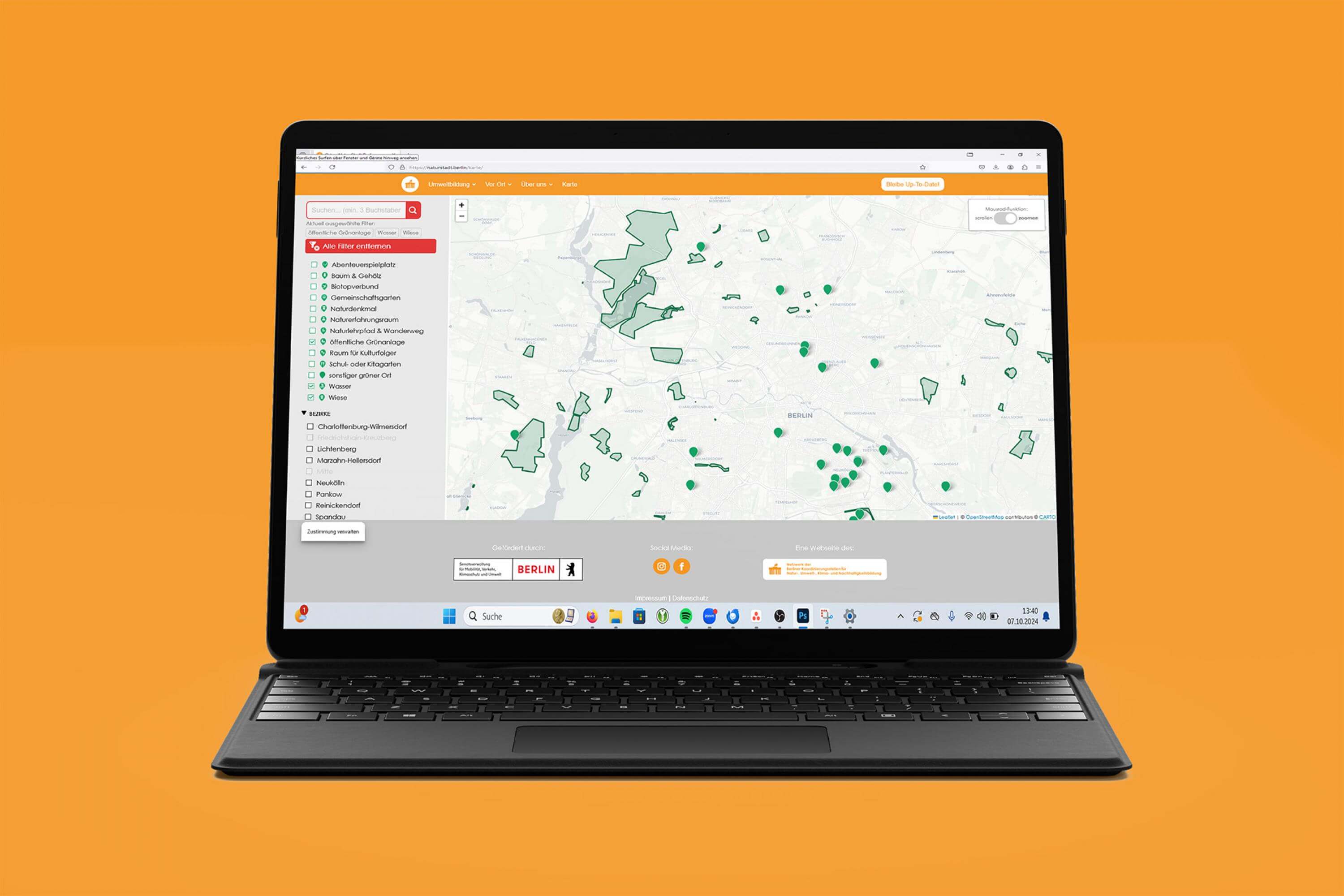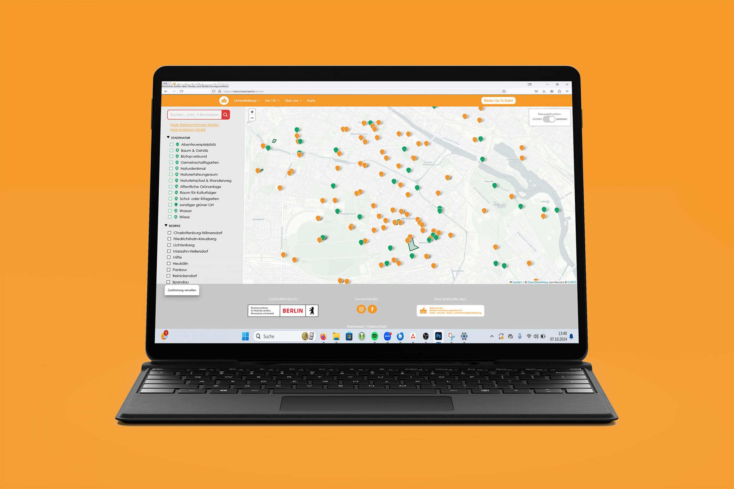 Wir freuen uns sehr, dass wir die interaktive Stadtkarte auf der Webseite Naturstadt.berlin gestalten und technisch umsetzen durften. Sie bietet einen Überblick über die vielfältigen Angebote zur Natur-, Umwelt-, Klima- und Nachhaltigkeitsbildung in Berlin.